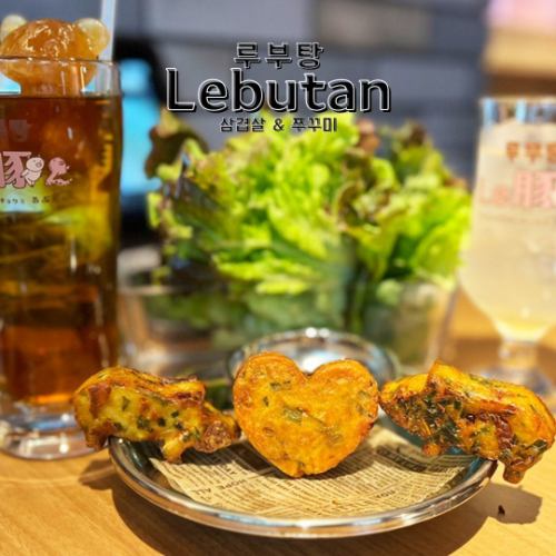るぶたんオリジナルチヂミです♪中に豚肉と野菜が入っています。るぶたん/韓国/韓国料理/サムギョプサル/チュクミ/女子会/デート/記念日/貸切
